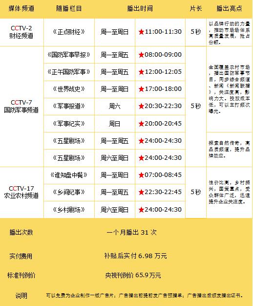 1. 我公司免費為企業制作播出平面廣告片一版,保證通過央視審核。